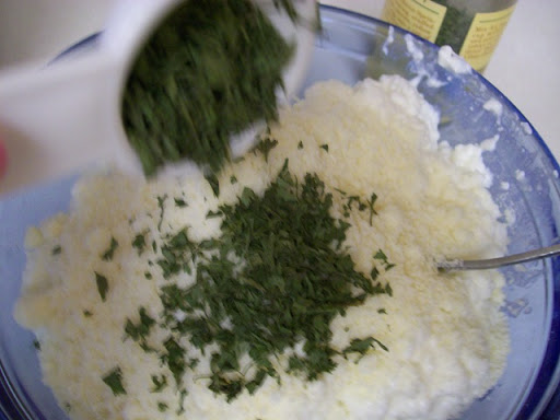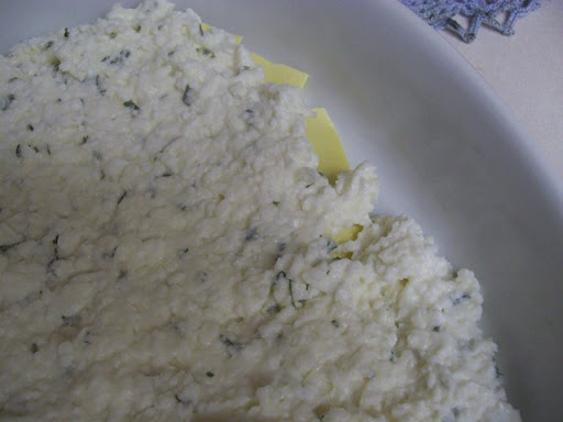 Now while we wait, we mix 3 cups of low fat cottage cheese and 2 beaten eggs. I ran out of eggs, yeah, I know....how dreadful....so I left them out and it was still really really good. Not sure how much of a difference the eggs would make but since I've giving you the RIGHT recipe by Ree, add the eggs ok?