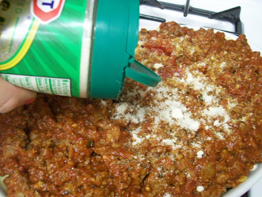 Then because we love cheese, you top everything with a nice yummy layer of Parmesan cheese.