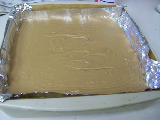 Line a 8.in. x8-inch pan or a 9x13.inch pan with aluminum foil and pour the fudge in. Let it cool and then cut into squares.