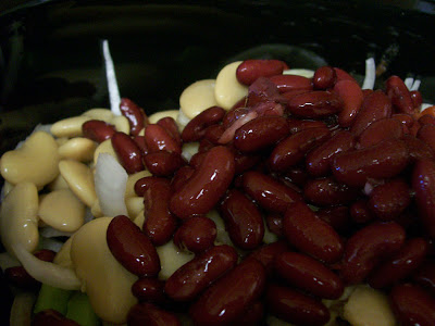Next go in the beans, don't forget to drain and rinse them